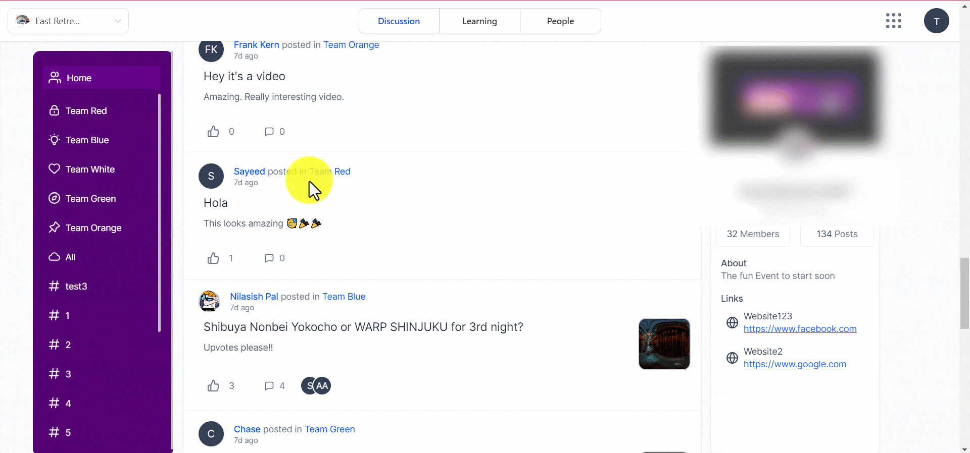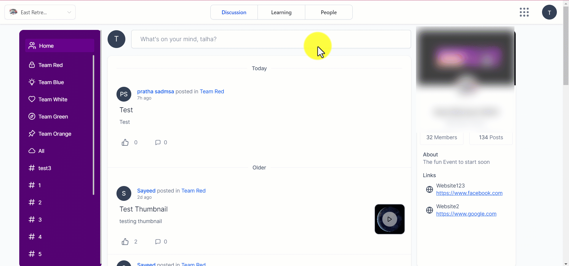 Video's insluiten: Berichten in de community kunnen video's hosten van verschillende platforms zoals YouTube, Vimeo, Wistia en Loom. Dit maakt meer boeiende en interactieve content binnen berichten mogelijk.