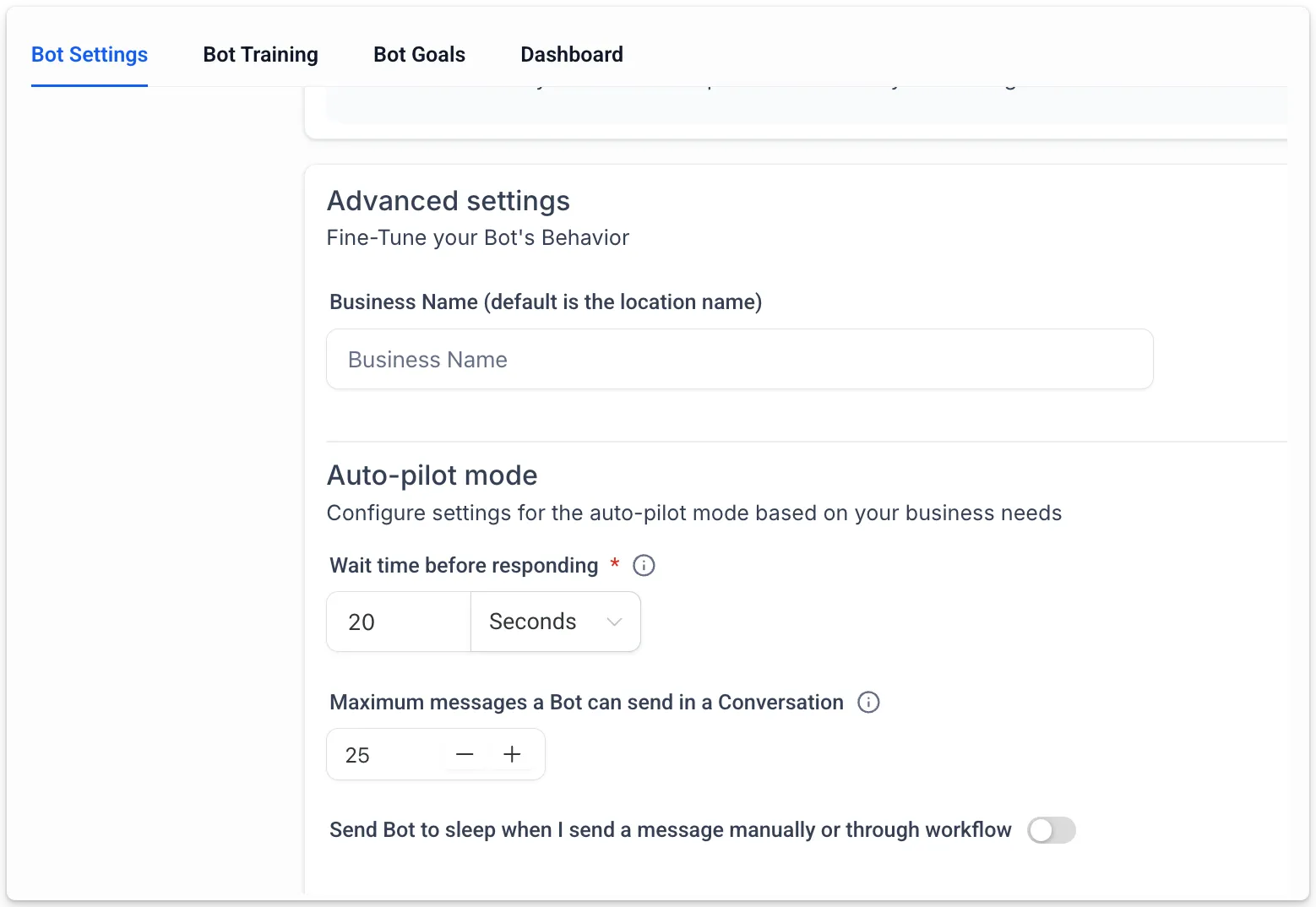 - Maximale berichtlimiet: De bot gaat in slaapstand als deze limiet wordt bereikt in een gesprek. Om de bot weer te activeren, markeer je het gesprek als "Gelezen." De standaardlimiet is 10 berichten in één gesprek.