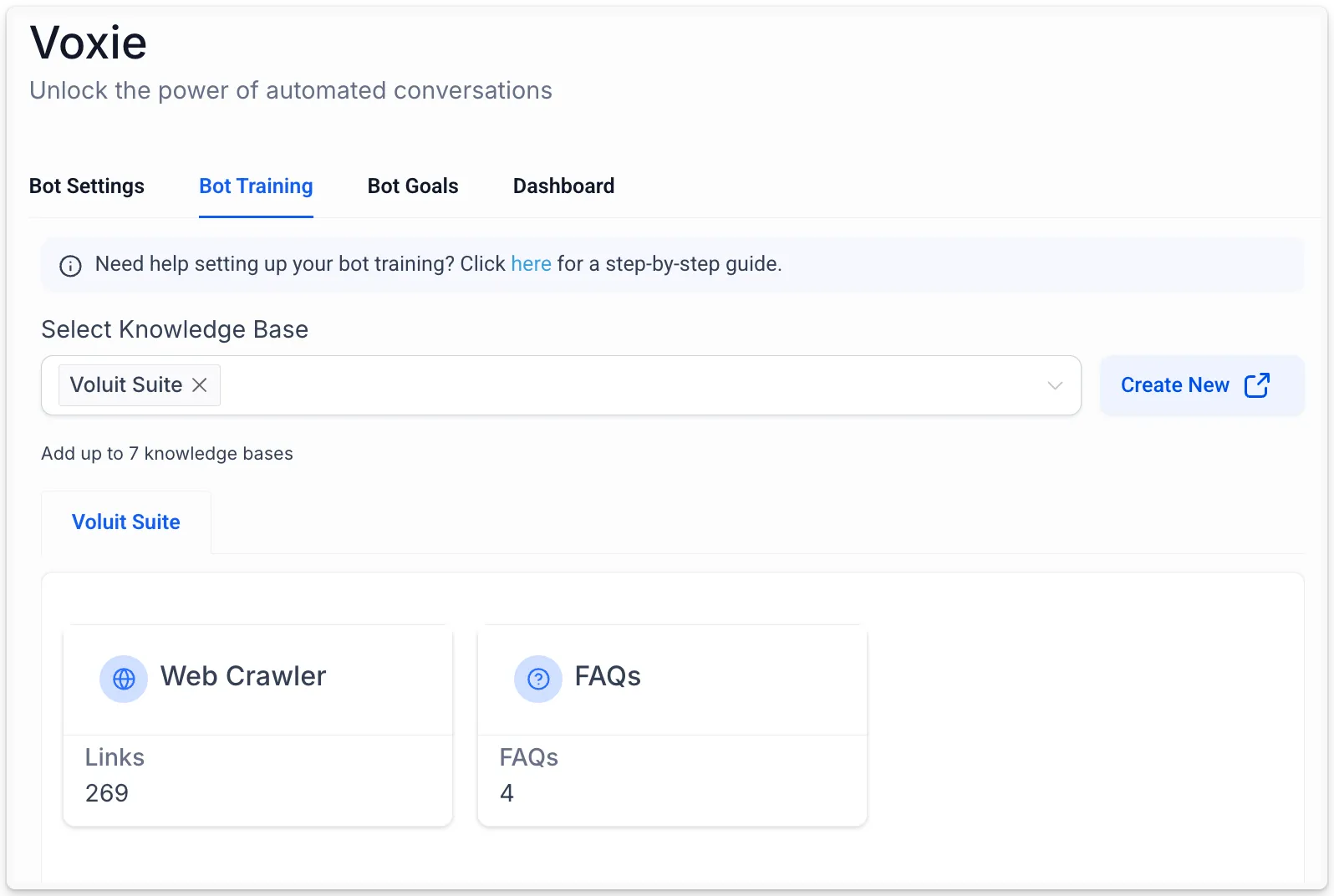 Er zijn 2 manieren om je bot te trainen in het gedeelte "Bot Training" van de Conversatie AI instellingenpagina in je accountinstellingen: