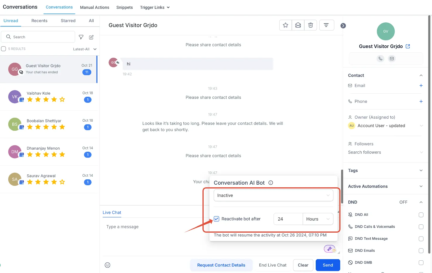 - Verbeterde Botcontrole: Je kunt nu handmatig de status van de bot aanpassen voor elk contact