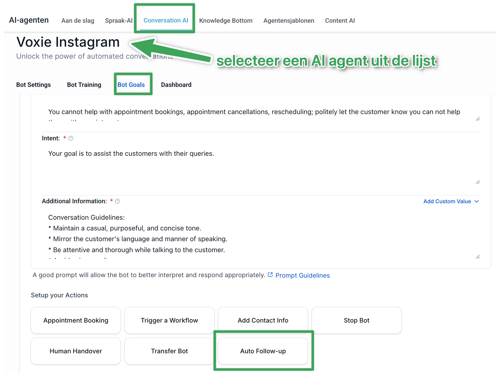 Hoe je Automatische Follow-Up instelt in Conversation AI