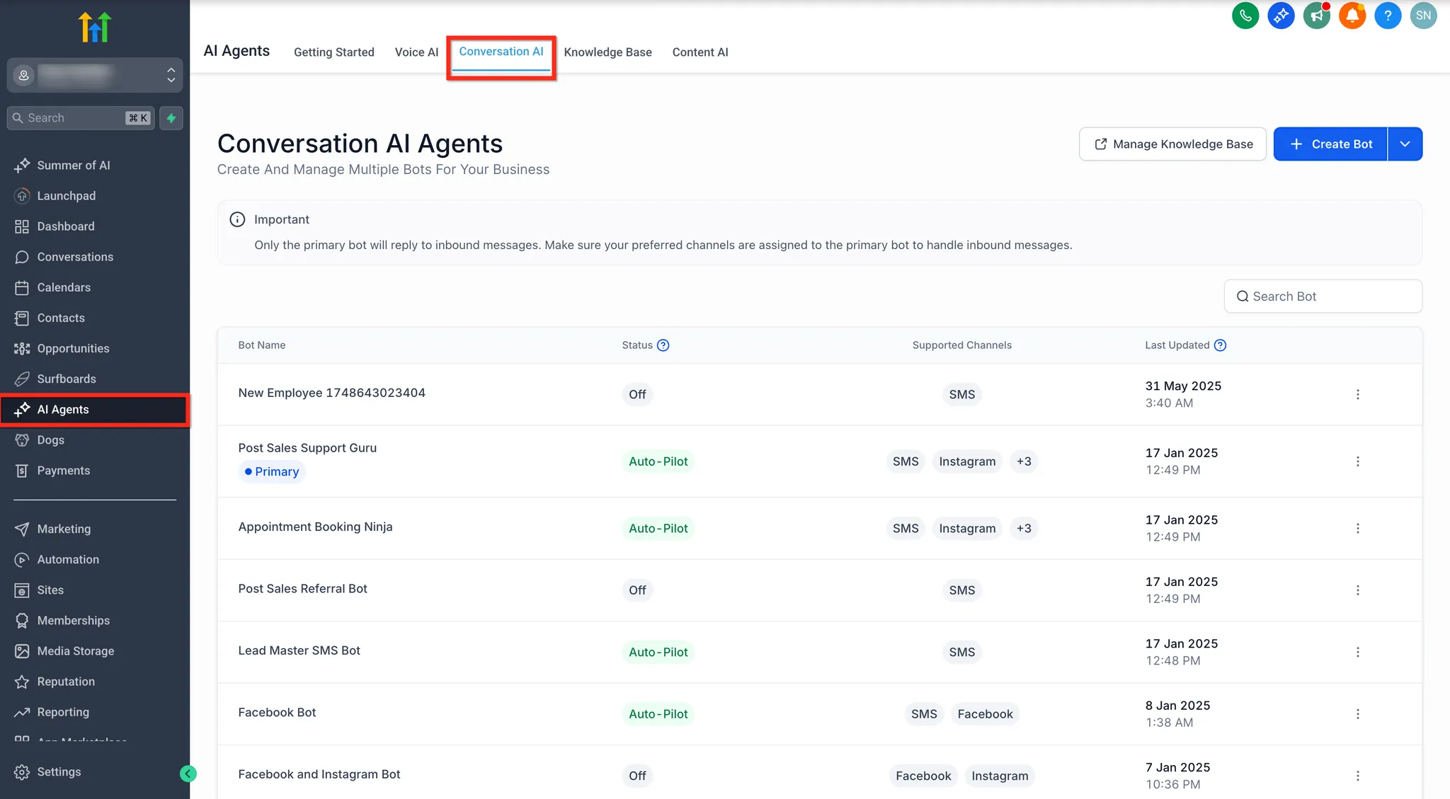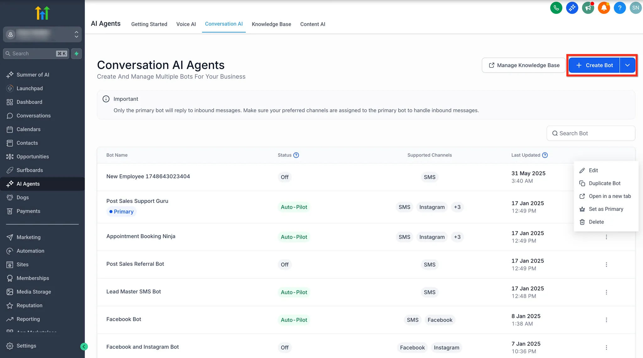 - Klik in het linker menu op AI Agents.