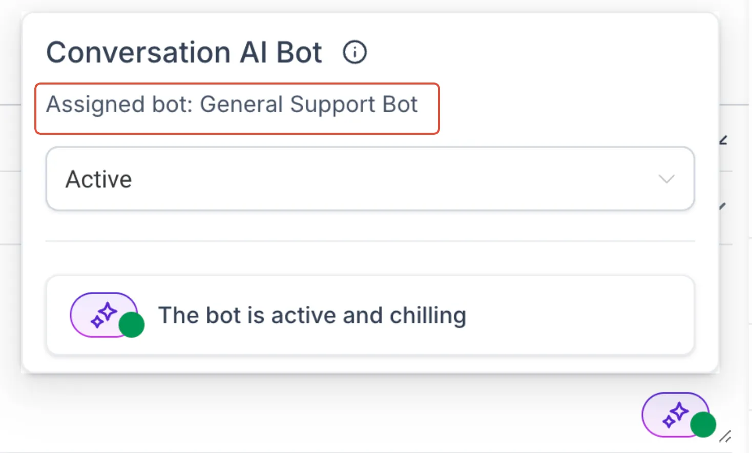 Nadat een bot is toegewezen, kun je de toegewezen bot voor een contact zien in het tabblad conversatie