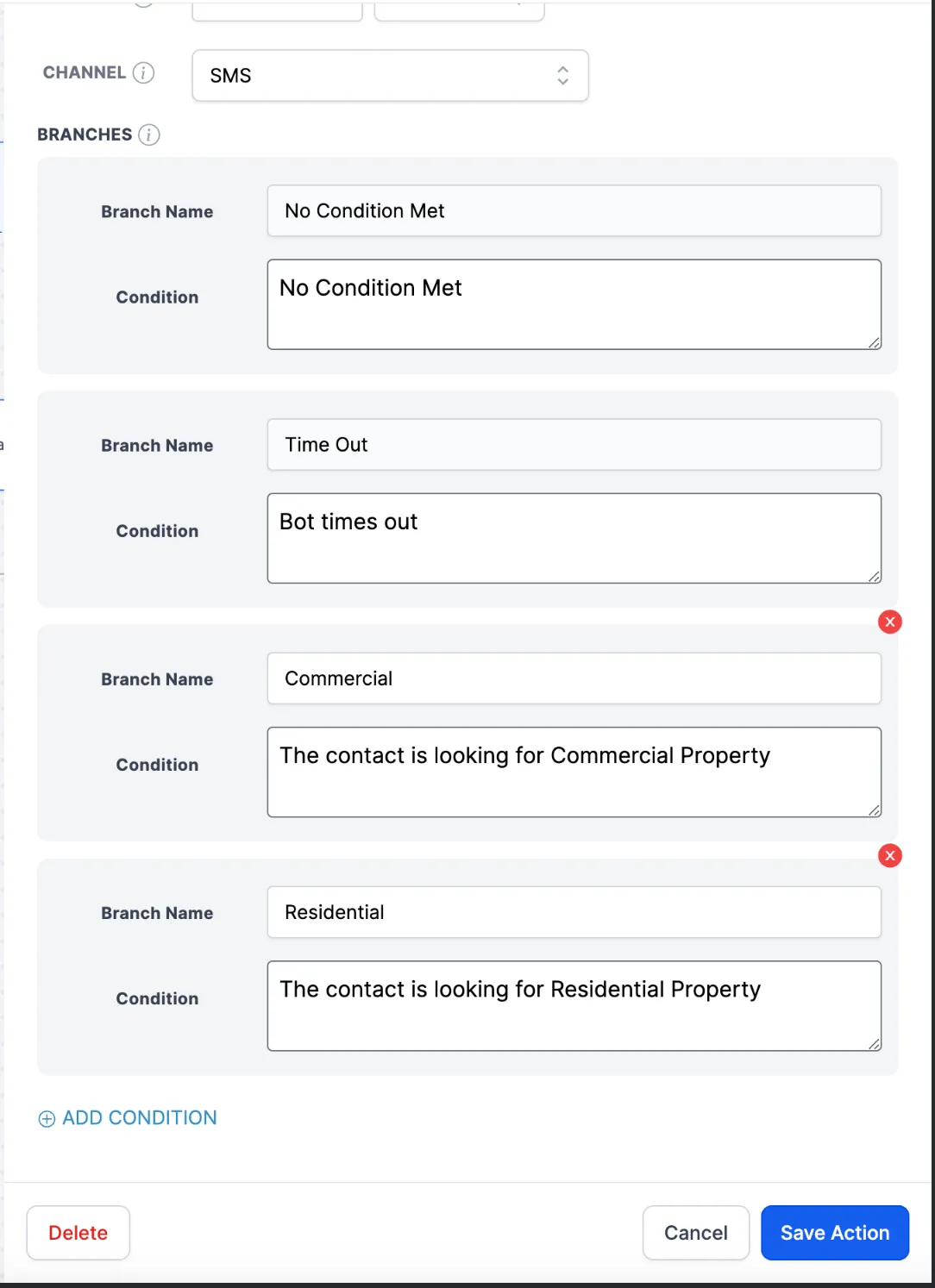 - Elke vertakking moet een naam hebben en een voorwaarde op basis waarvan het contact die vertakking zal volgen