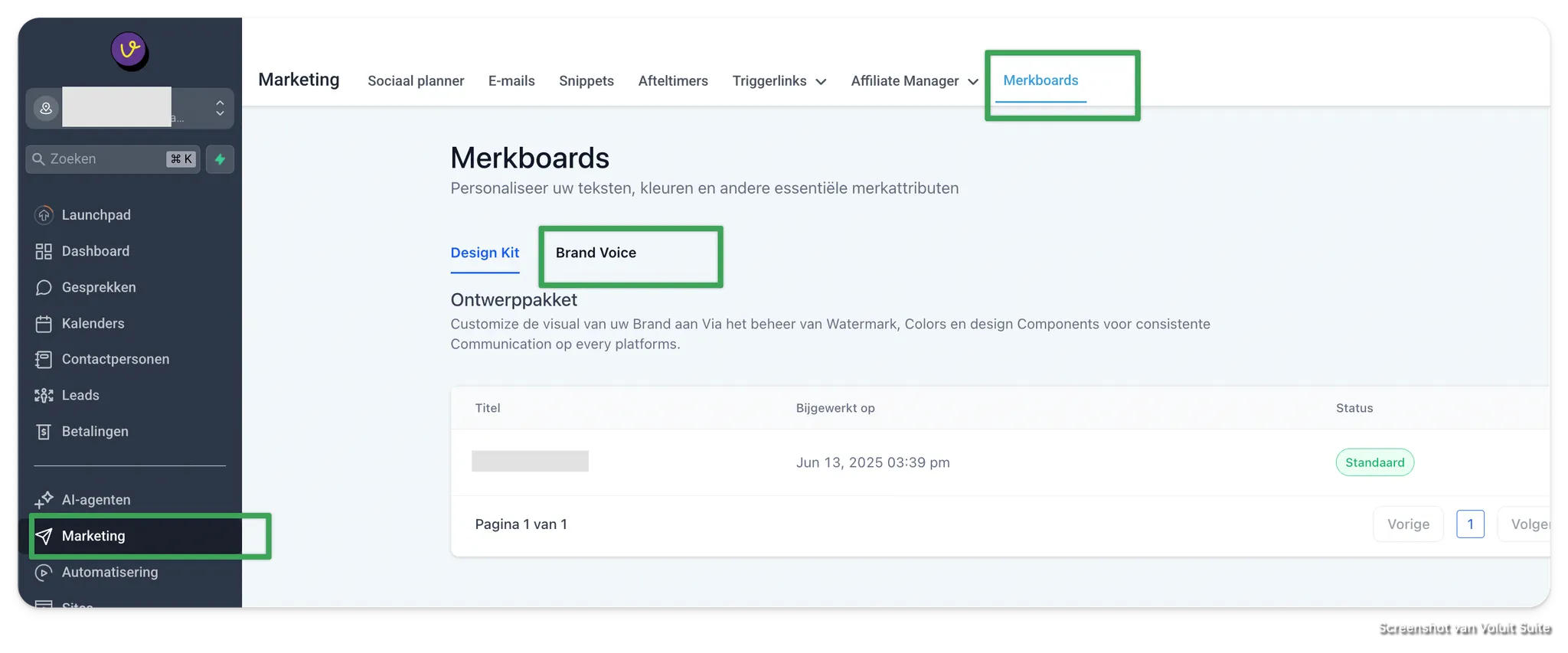 - Ga naar Marketing → Merkboards.
