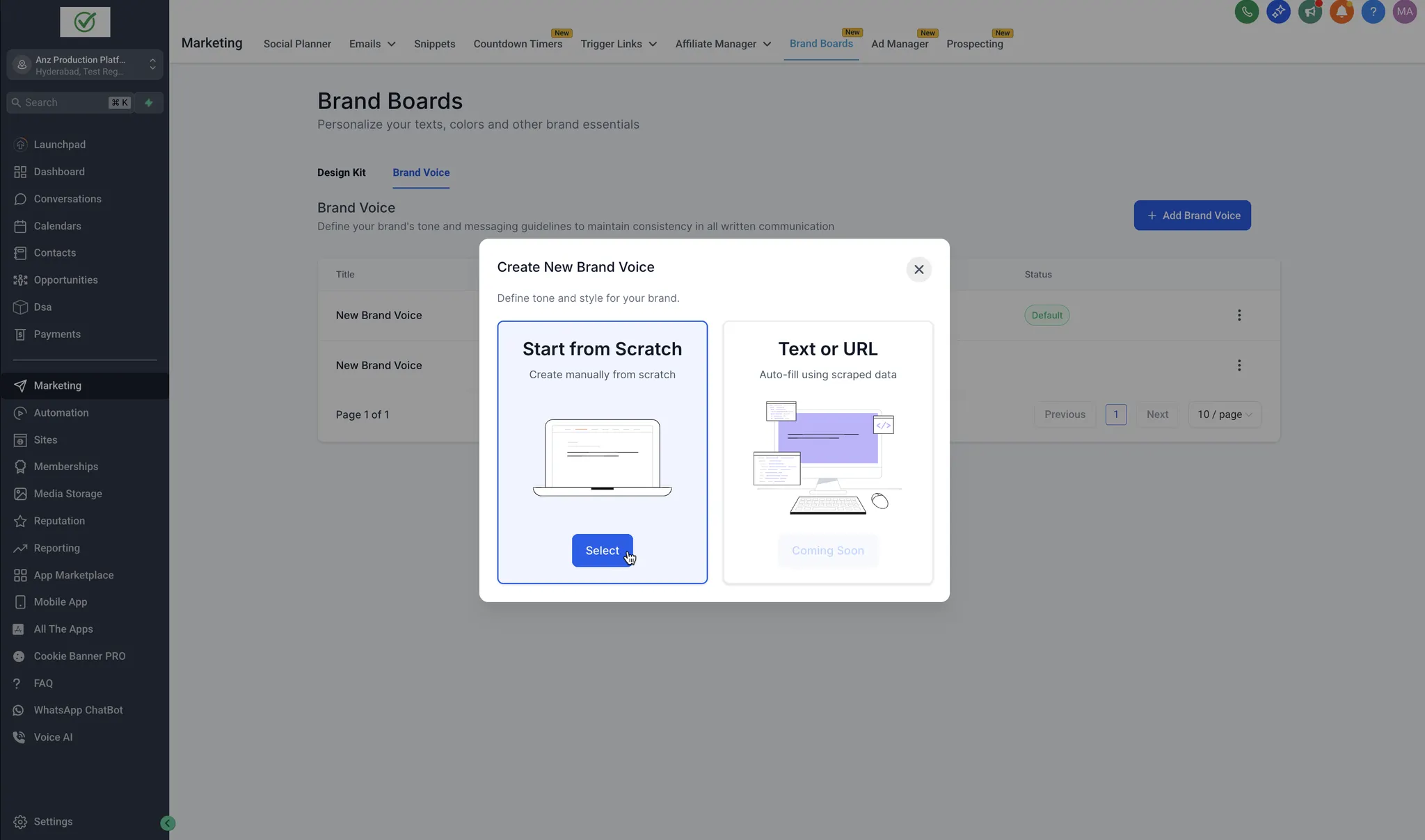 - Klik op Nieuwe Brand Voice maken.
