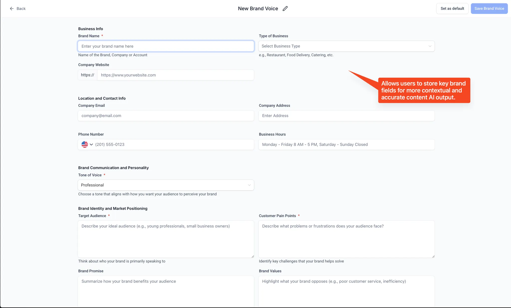 - Klik op Opslaan om je Brand Voice op te slaan.