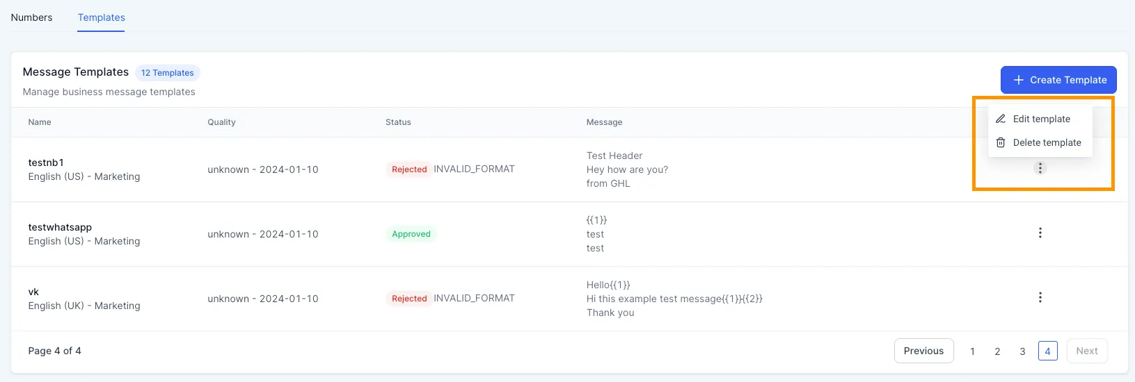 Gewone WhatsApp-berichten kunnen vrij worden verzonden naar klanten die je binnen de laatste 24 uur hebben bericht. Templates vereisen goedkeuring en zijn de enige manier om nieuwe contacten te bereiken of degenen die in de afgelopen 24 uur niet actief zijn geweest.Ja, je kunt een gepauzeerde template bewerken om de inhoud te verbeteren en problemen aan te pakken die bijdragen aan negatieve feedback of lage betrokkenheid. Na bewerking kun je deze opnieuw indienen voor goedkeuring, en de status verandert naar "In Review" totdat deze is goedgekeurd.
