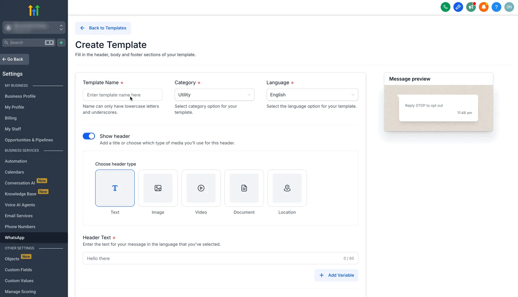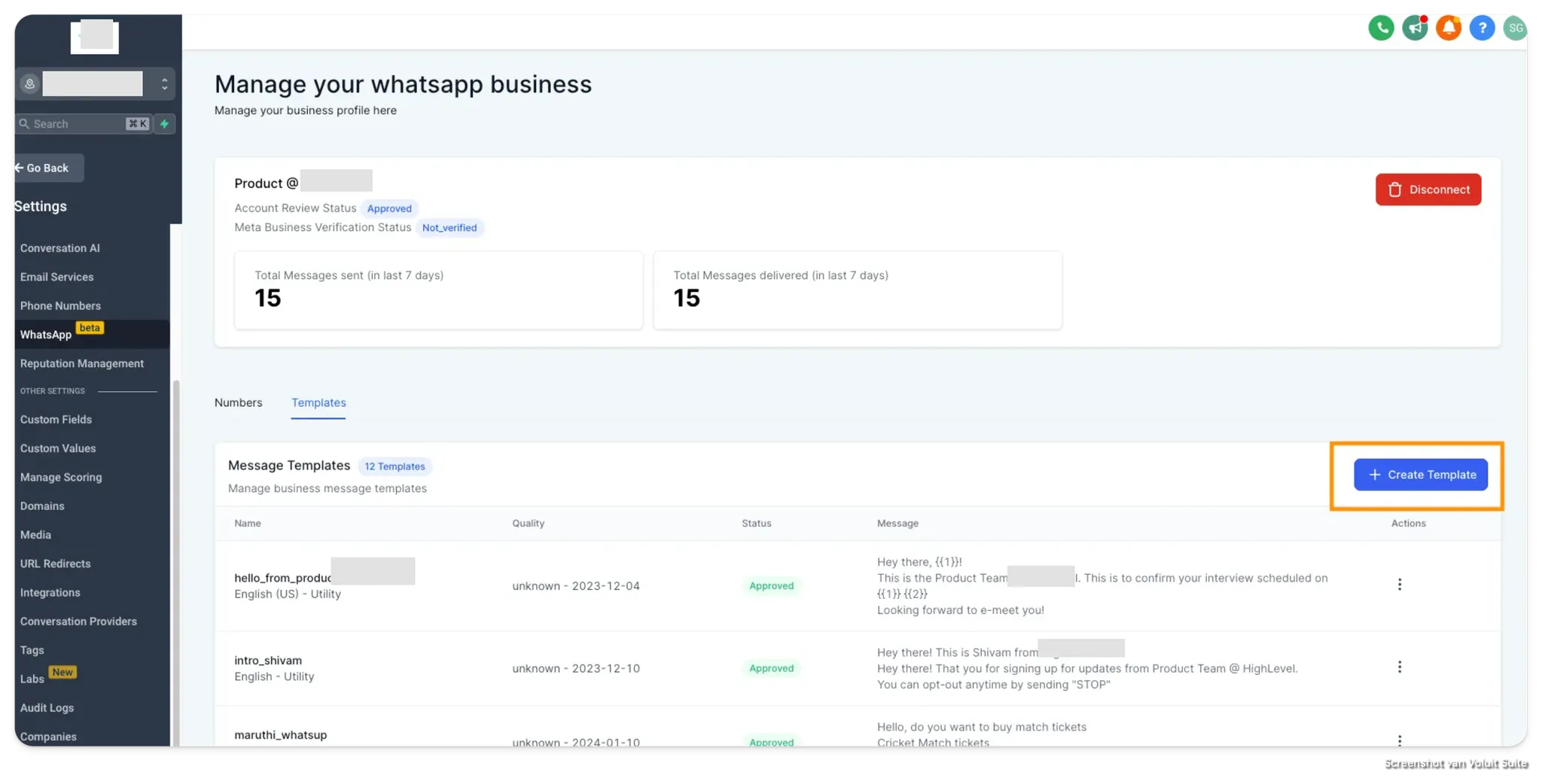Stap 1: Ga naar Instellingen > WhatsApp > Templates > Template maken