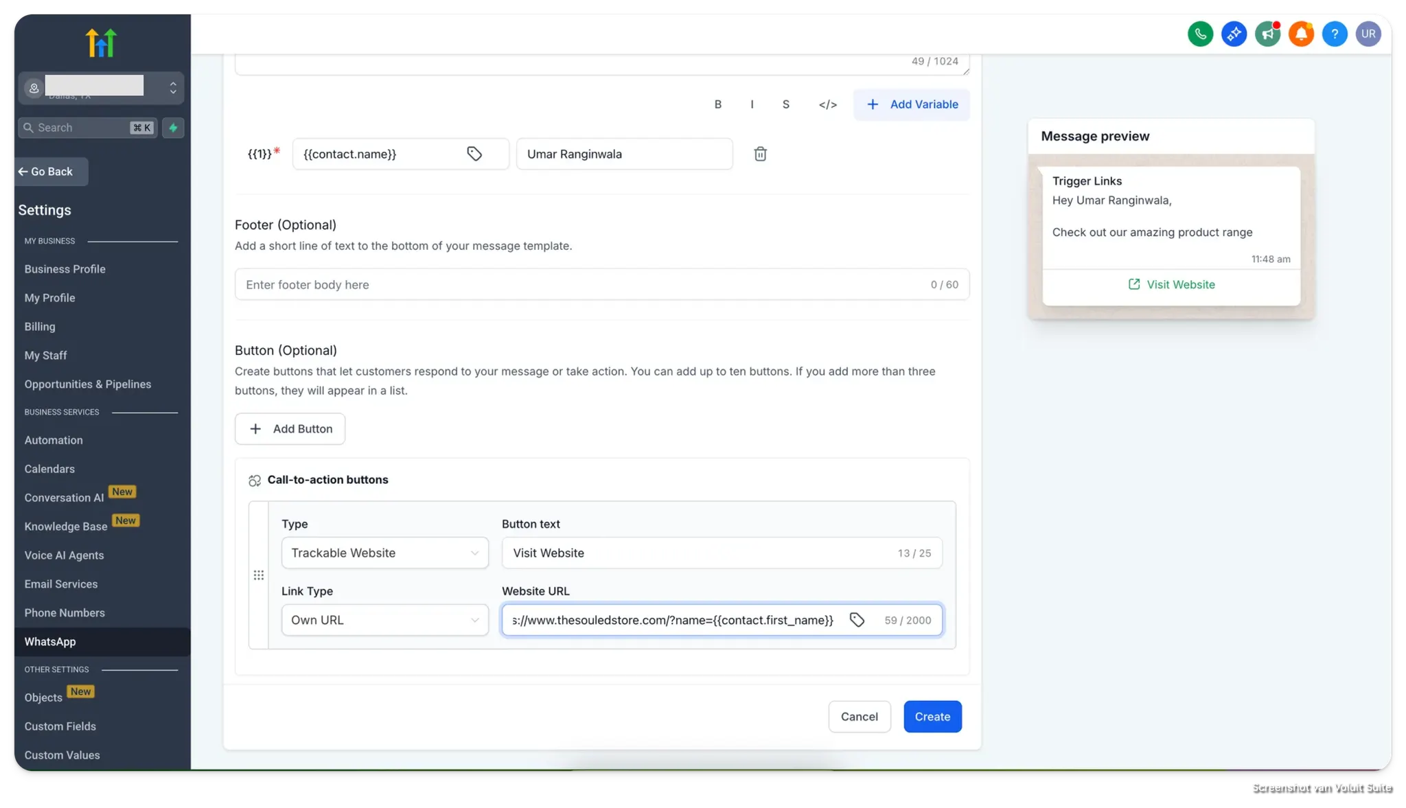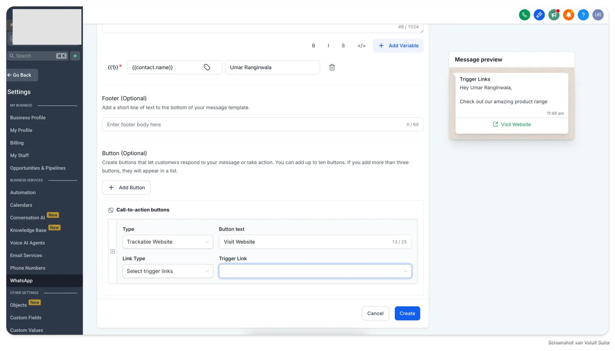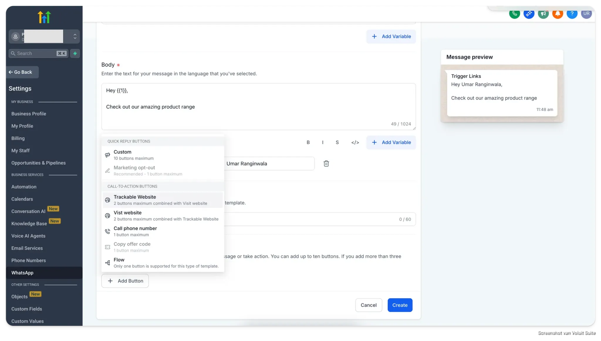 Hoe je Trigger Links instelt en gebruikt in WhatsApp Templates