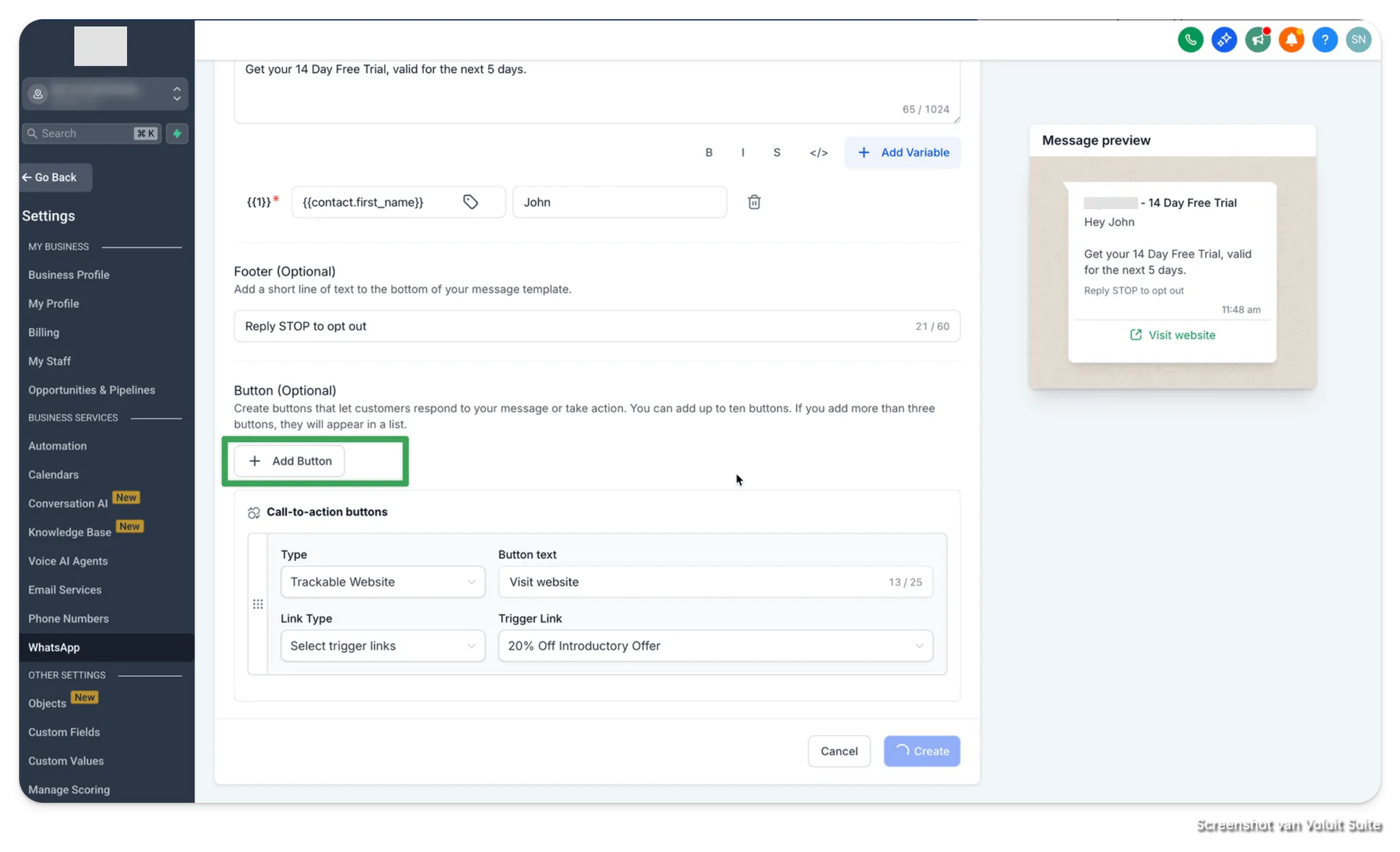 Trigger Links in WhatsApp Templates instellen en gebruiken