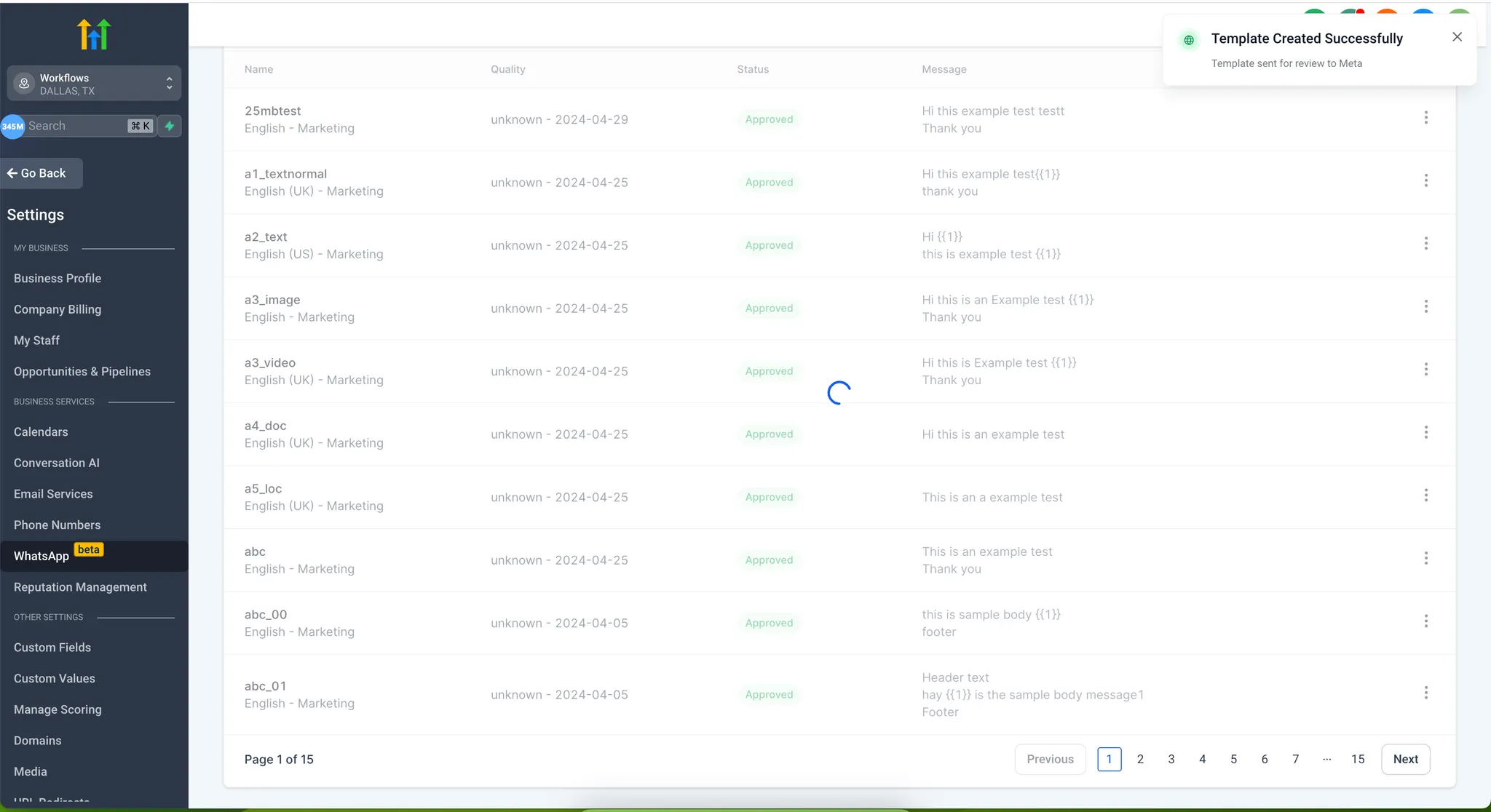 ℹ️ Als je berichttemplate is goedgekeurd, wordt de status ingesteld op Actief - Kwaliteit in afwachting en kun je beginnen met het versturen naar klanten. Als het wordt afgewezen, kun je het bewerken en opnieuw indienen voor goedkeuring, of in beroep gaan tegen de beslissing.