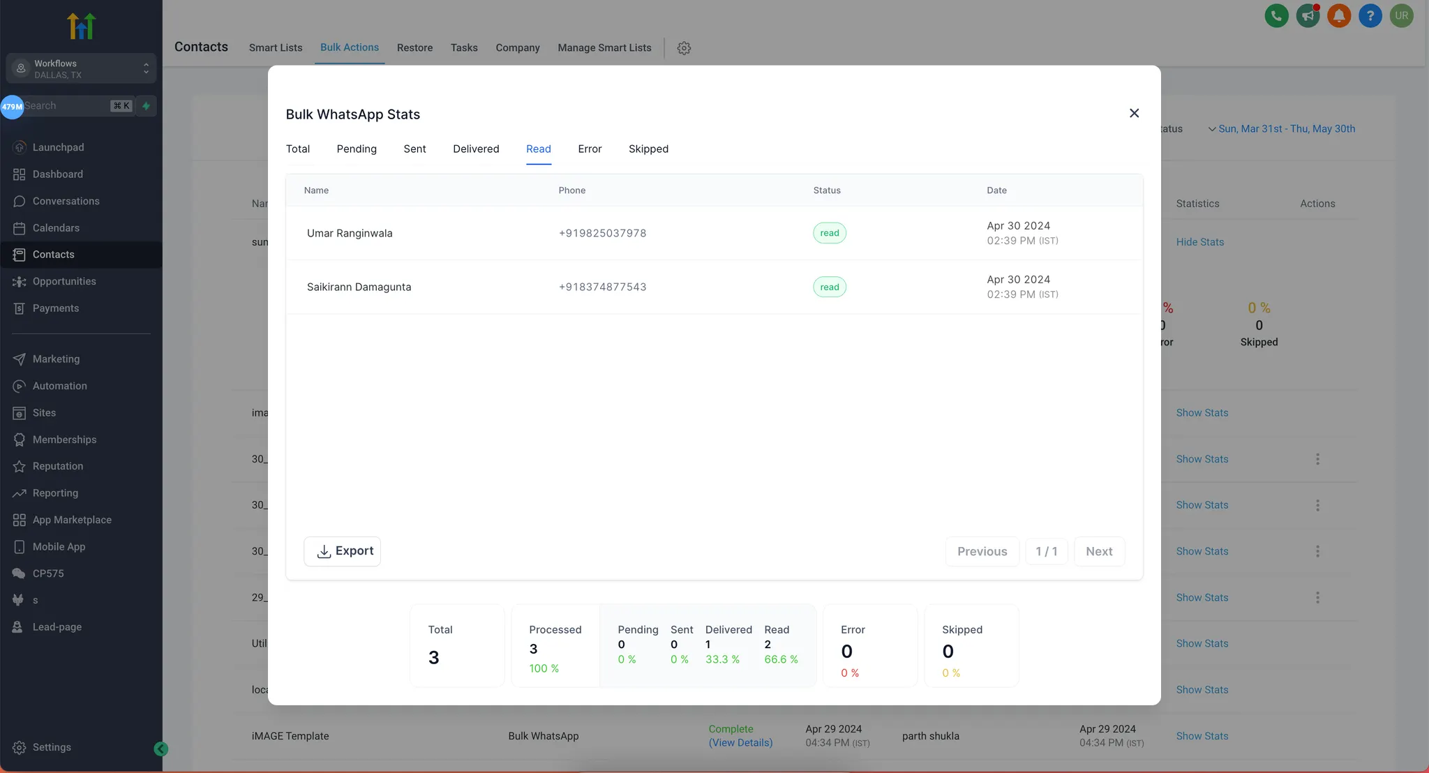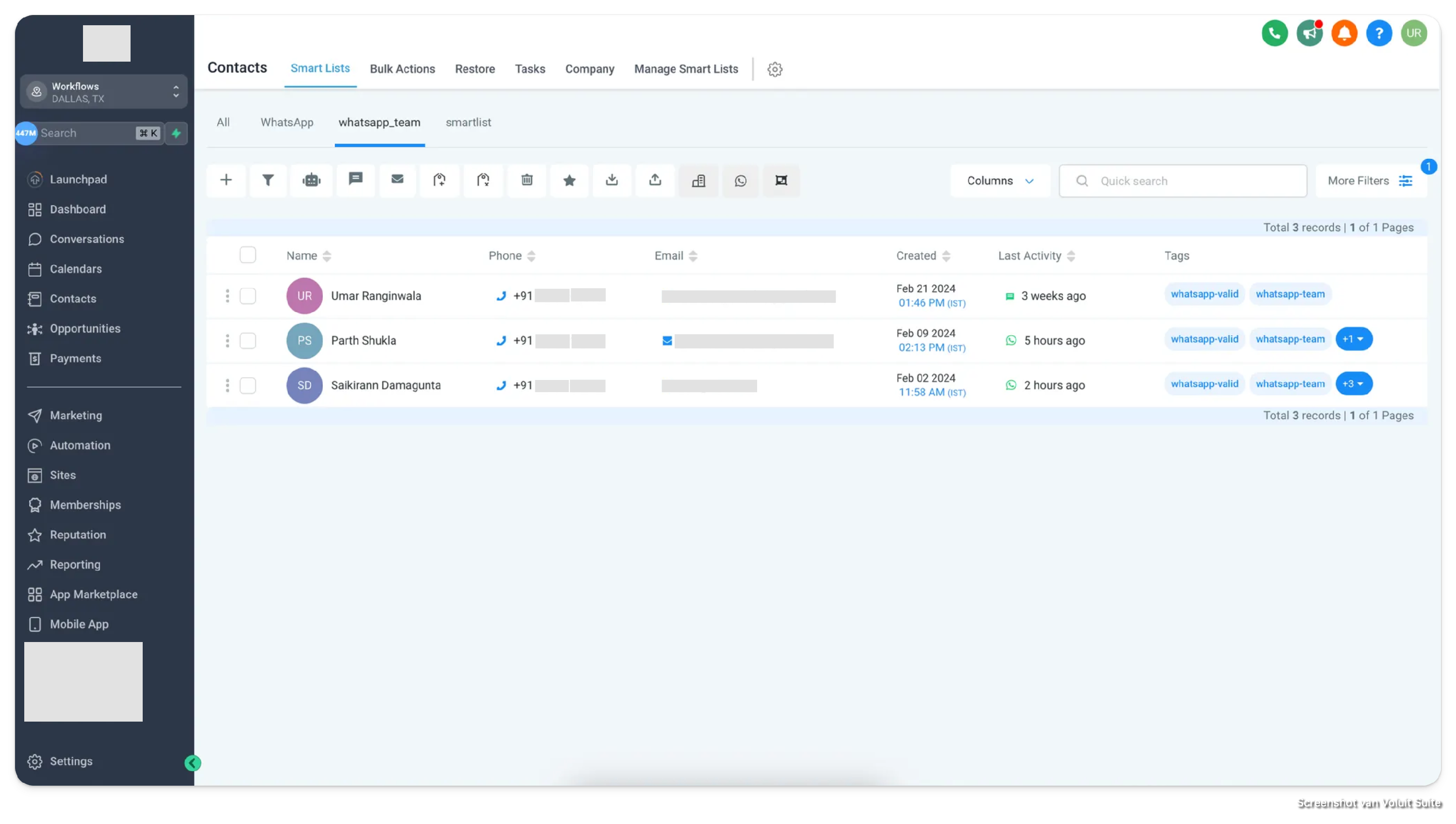 Stap 1: Ga naar Contacten > Selecteer de slimme lijst waarvoor je bulkberichten wilt versturen