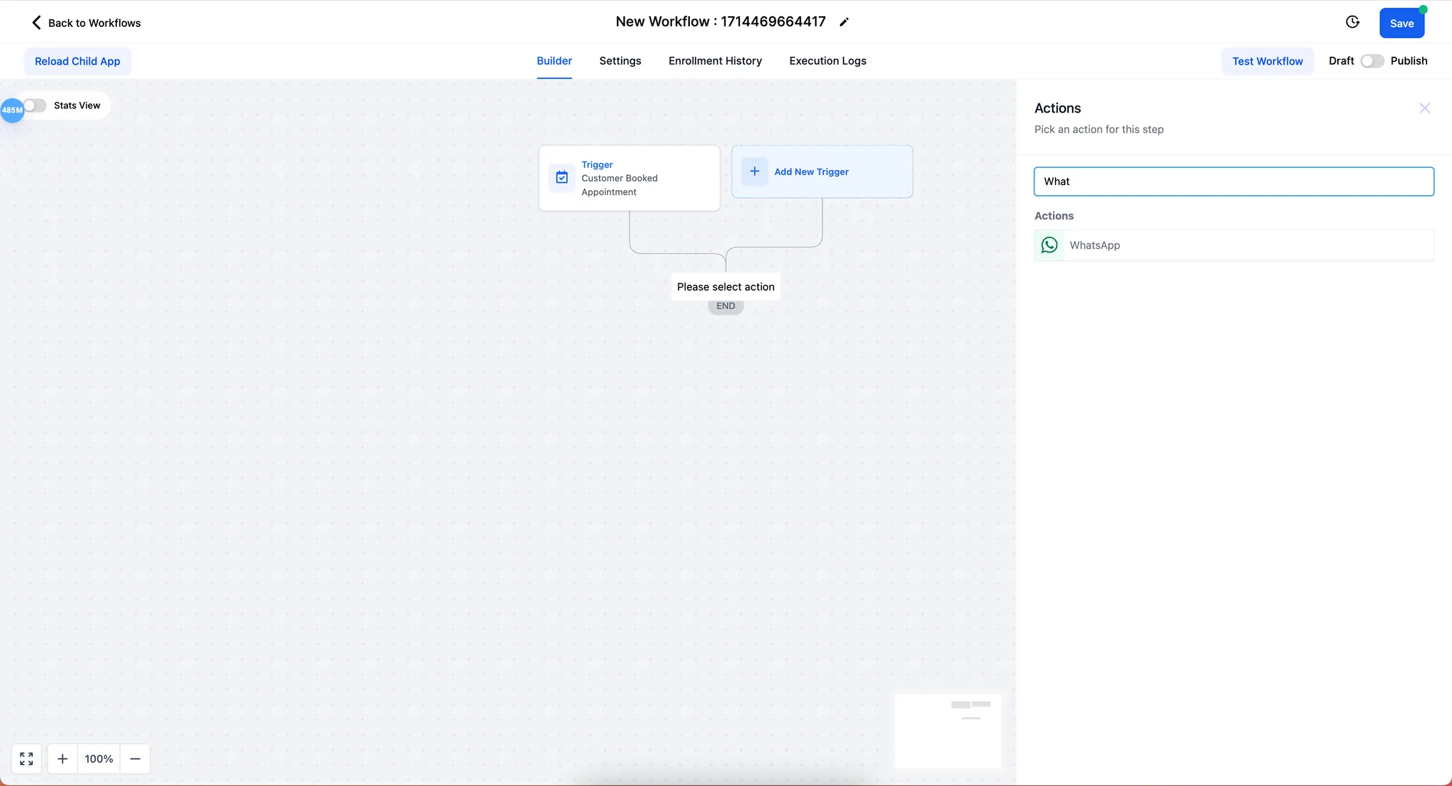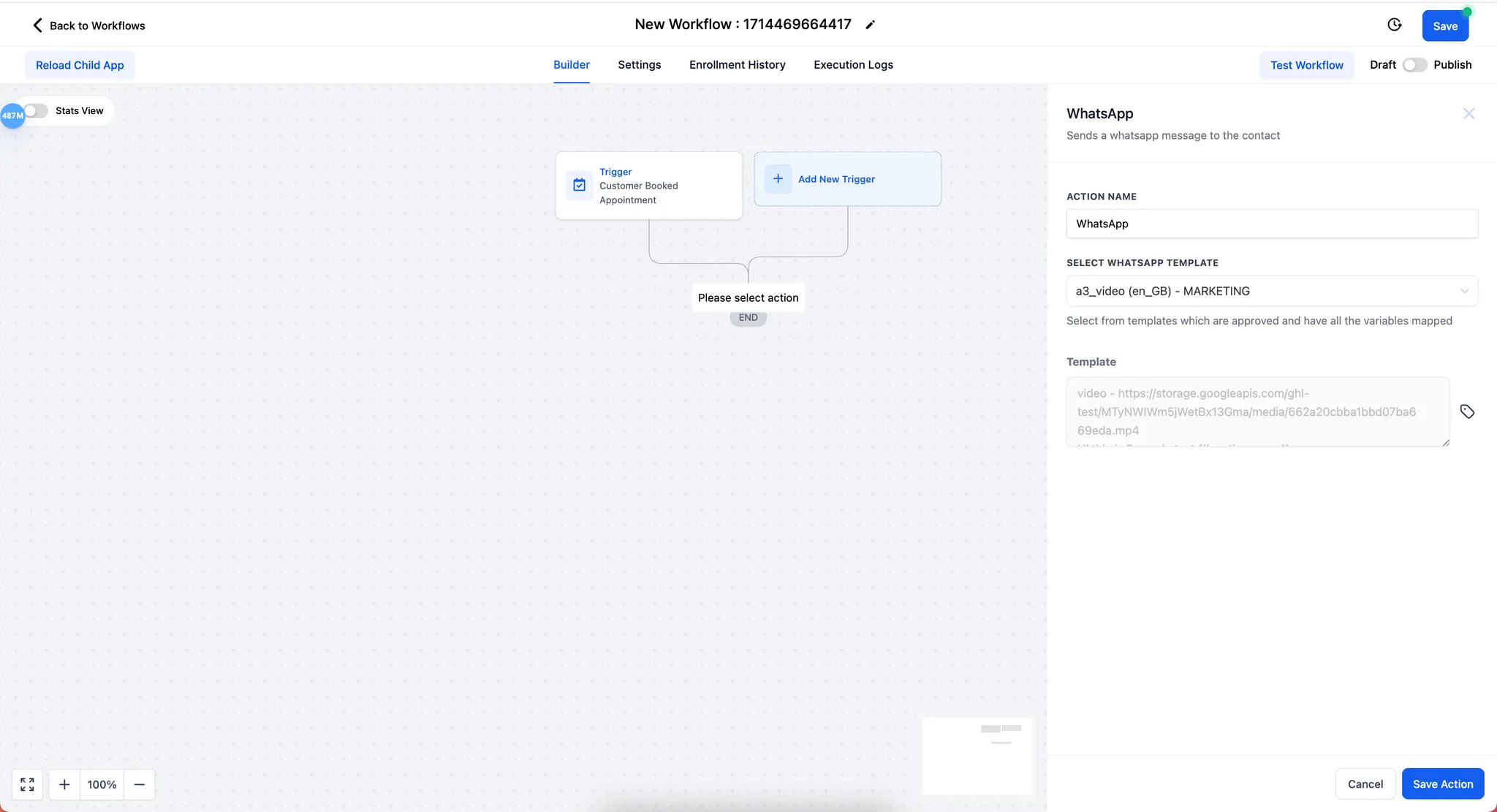 Stap 3: Selecteer WhatsApp Template > Actie opslaan > Workflow opslaan