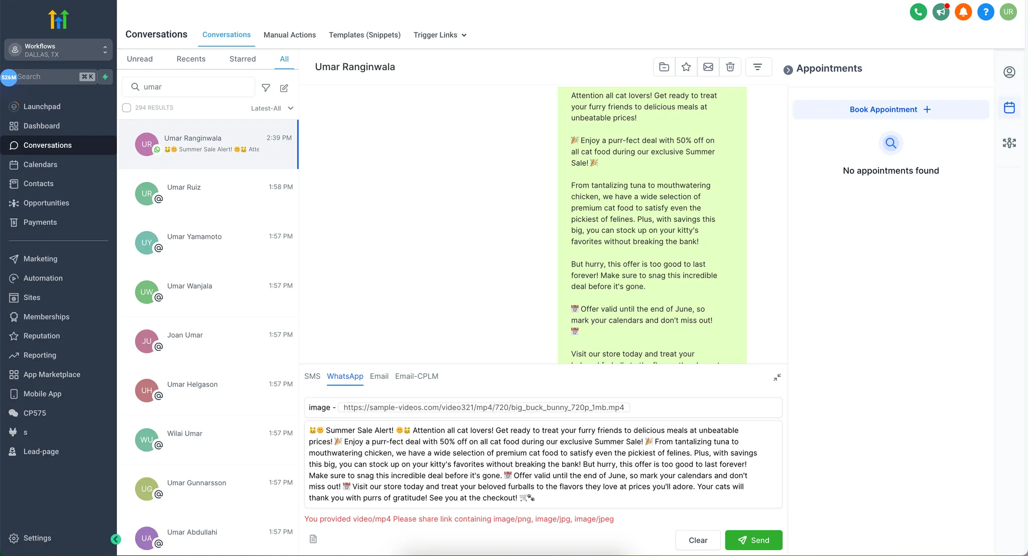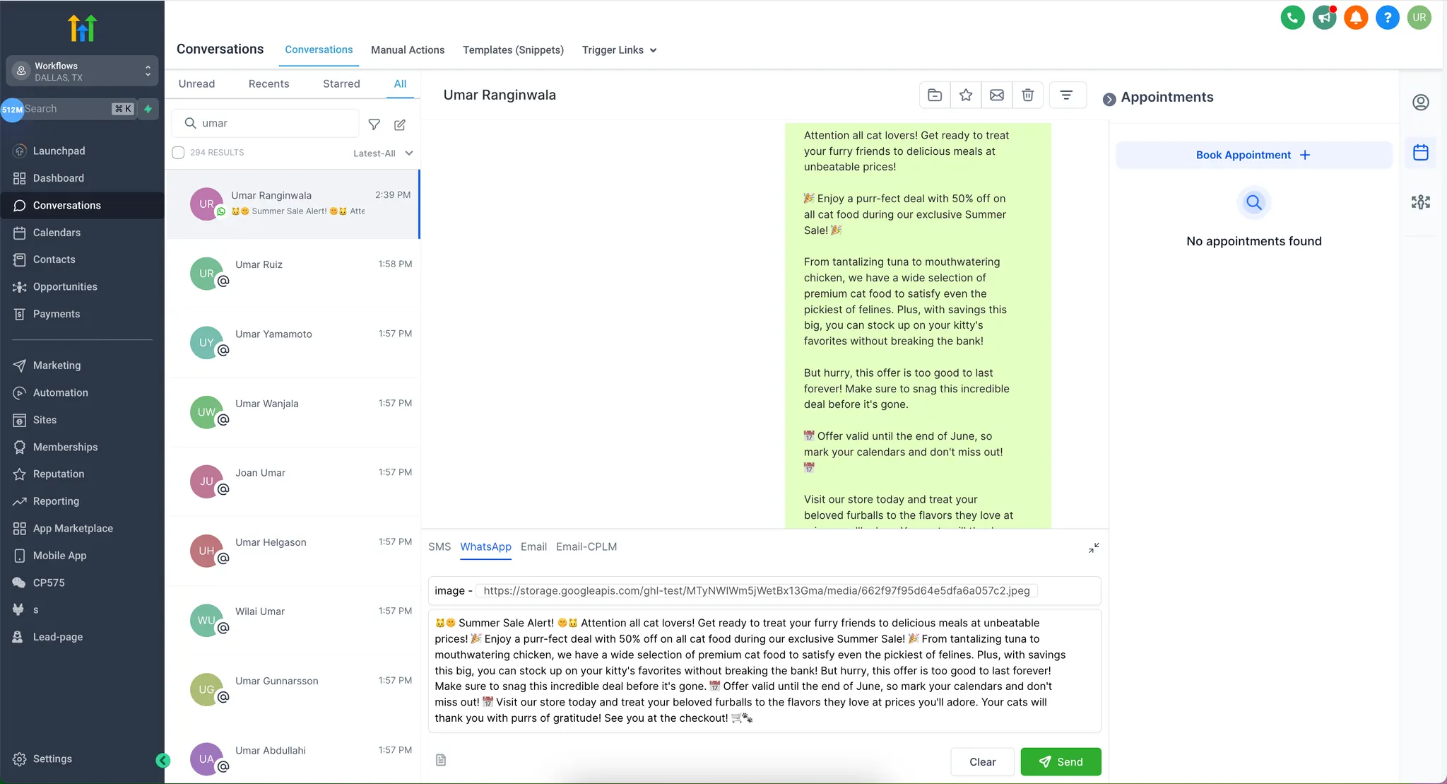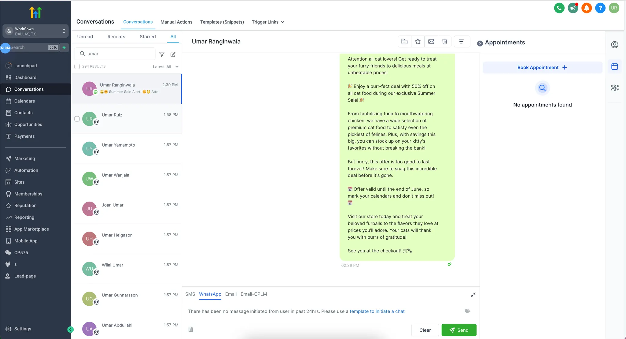 Stap 1: Ga naar Gesprekken > Selecteer het contact waarnaar je een WhatsApp template wilt sturen