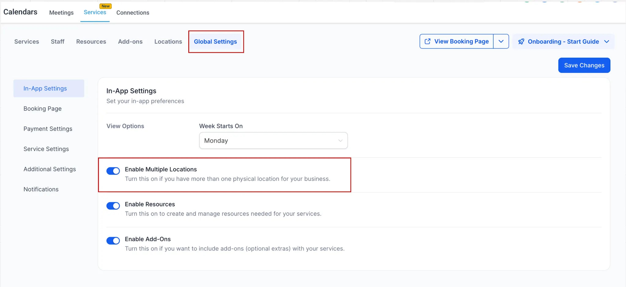 - Zet onder Algemene instellingen (global settings) de schakelaar Meerdere locaties inschakelen aan.