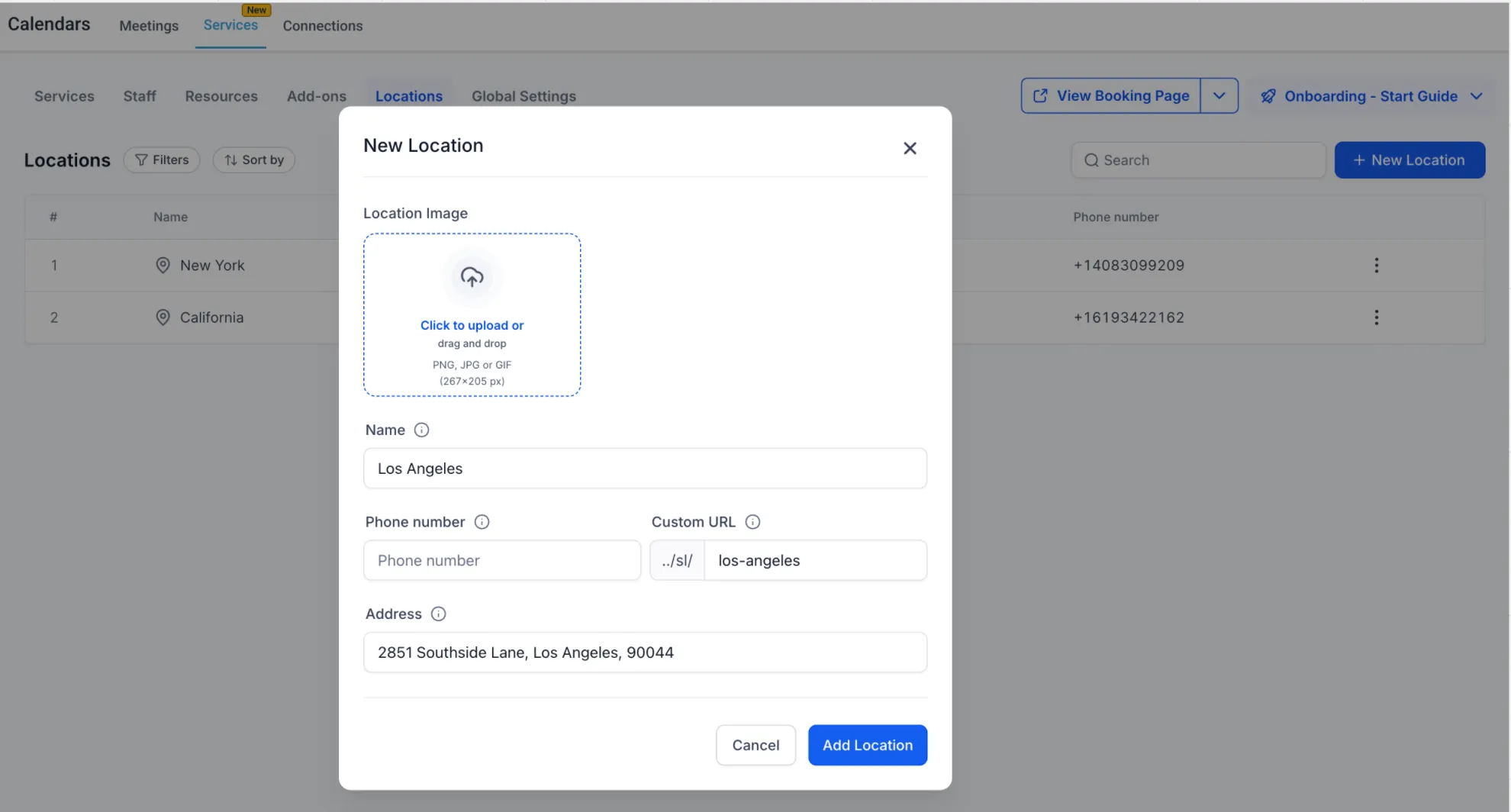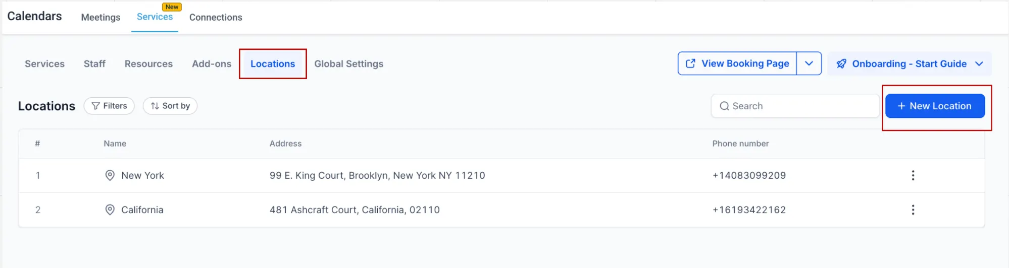 - Je kunt deze gegevens op elk moment aanpassen in Kalenderinstellingen > Services > tabblad Locaties door op Bewerken te klikken en de wijzigingen door te voeren.