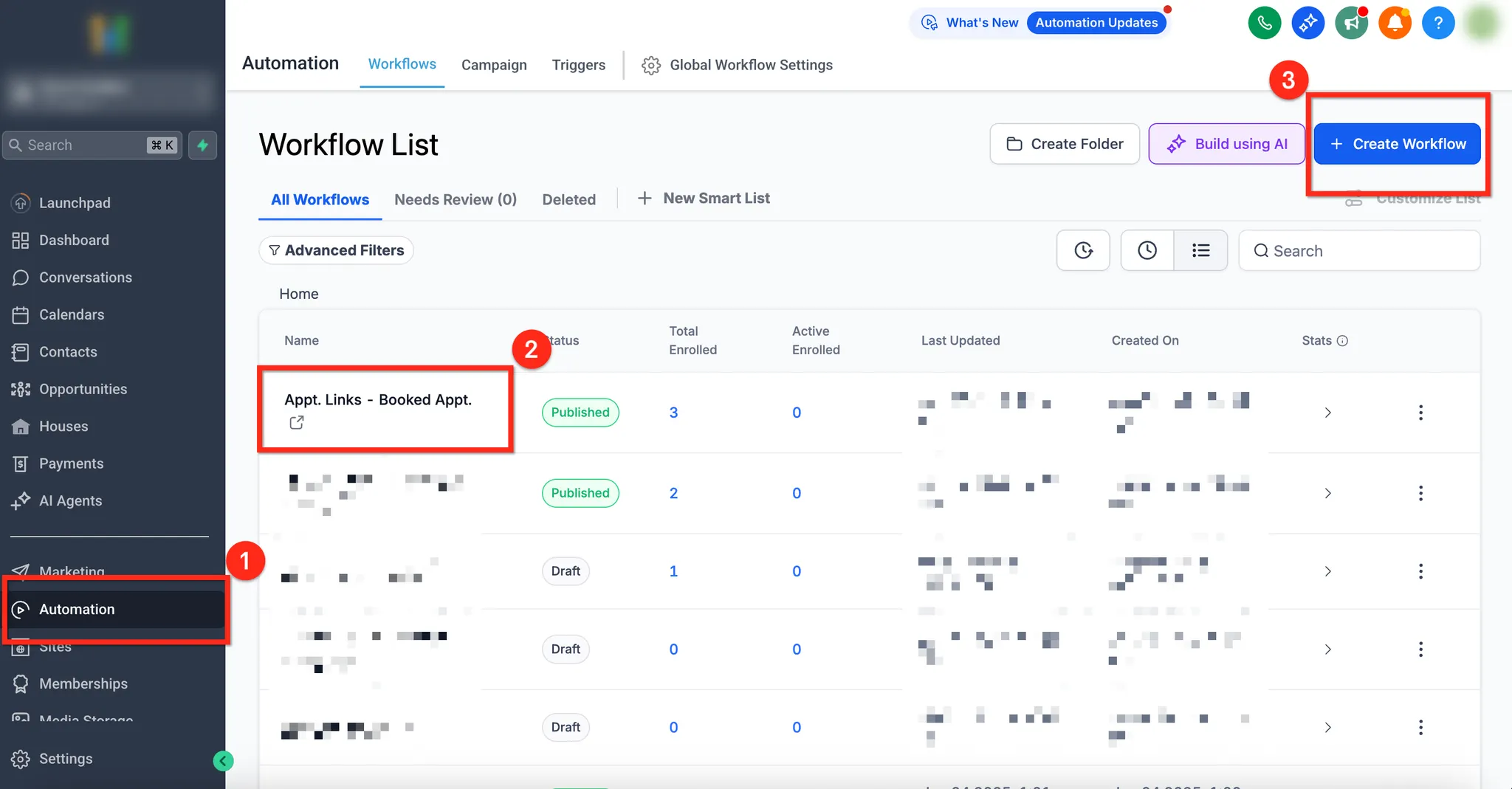 - Om een nieuwe workflow aan te maken, gebruik je de + Create New Workflow knop