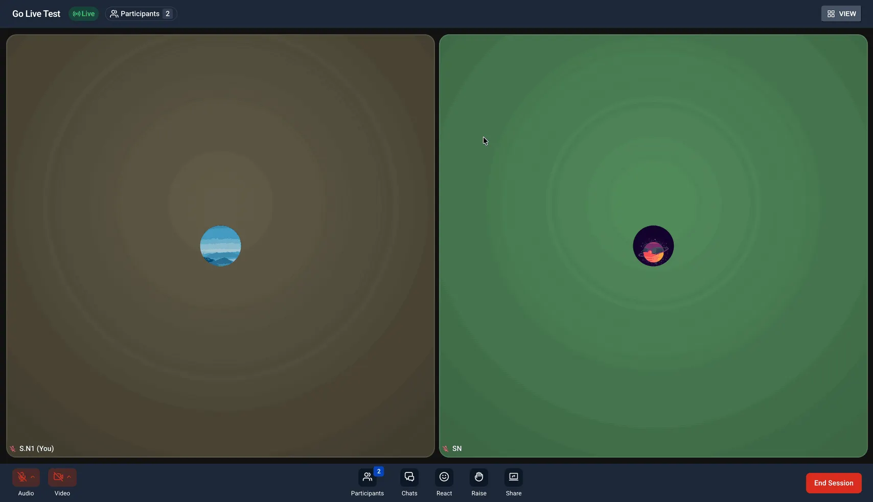 - Meeting Room Modus: Een interactieve, many-to-many live room met host controls, chat, reacties, hand opsteken, scherm delen en dynamische layouts (Grid/Speaker).