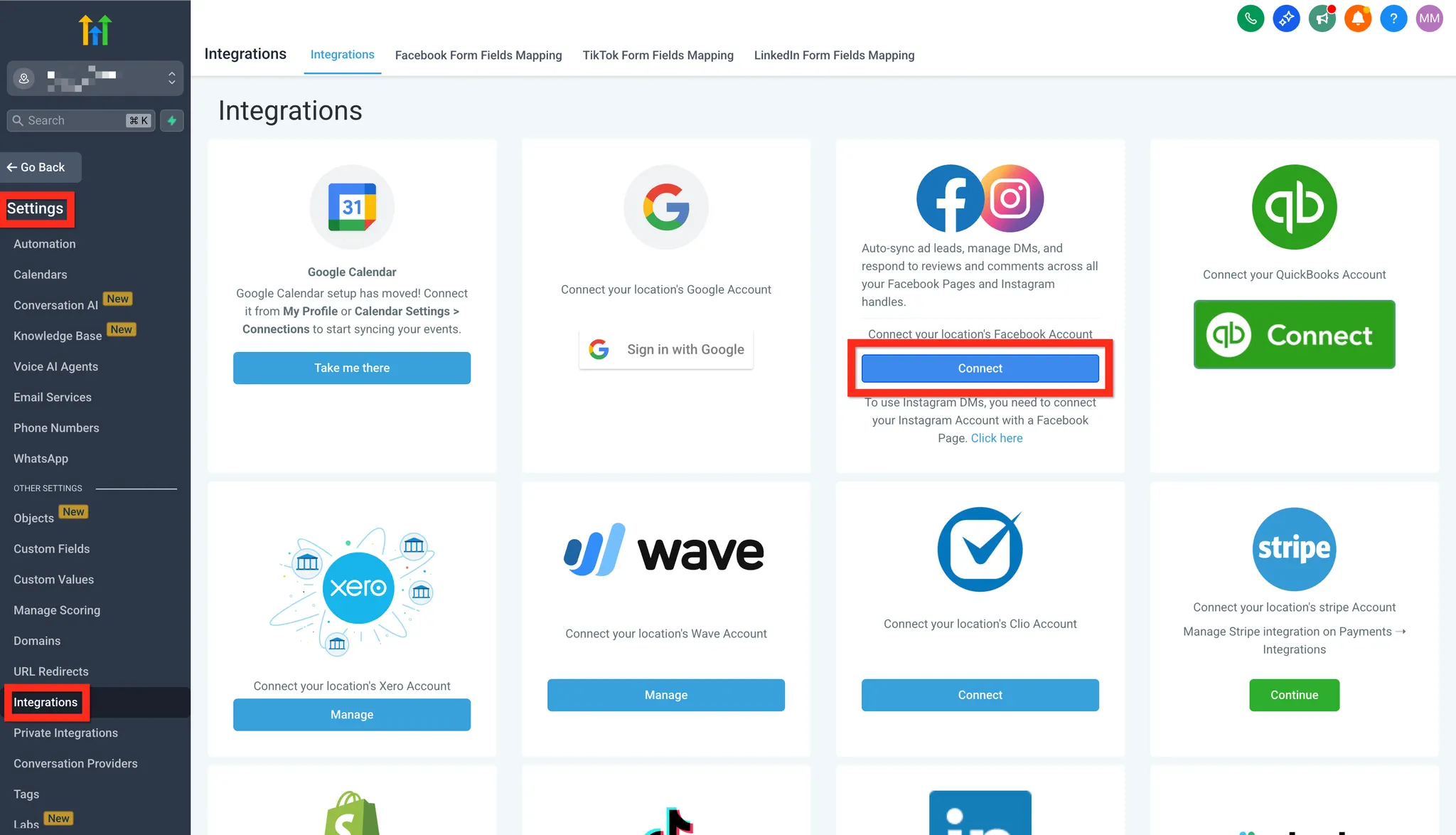 - Klik op Verbind Facebook & Instagram.
