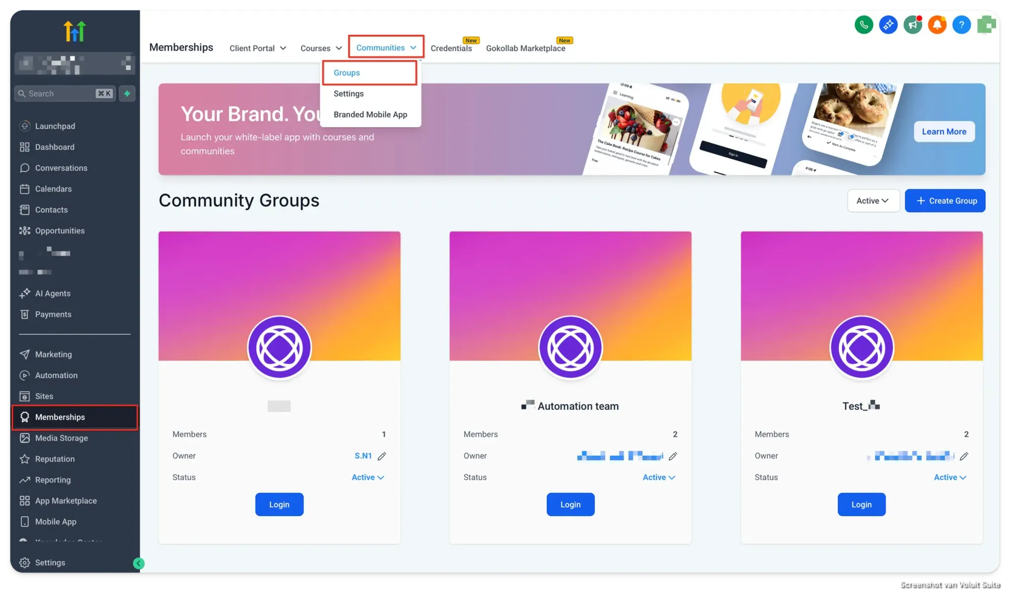 Ga vanuit je account naar Memberships > Communities en log in op de gewenste groep.