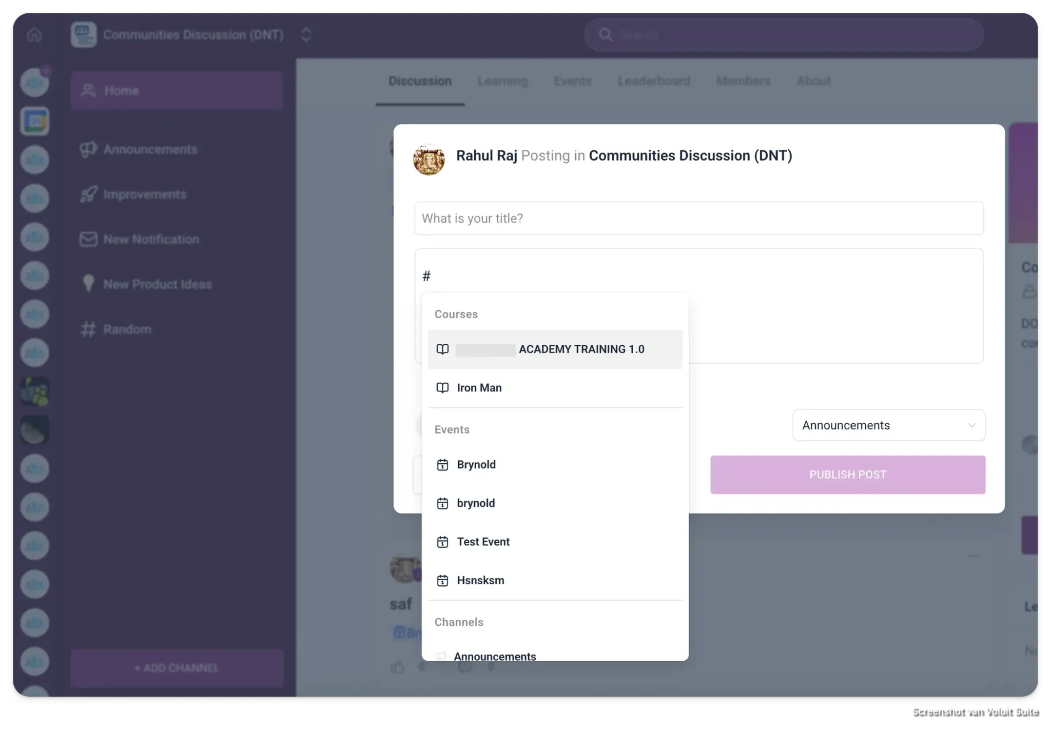 Maak gesprekken in je community actiegerichter door je cursussen direct te taggen in berichten en reacties. Leden kunnen cursussen ontdekken en er direct naartoe gaan met een snelle "#" tag, waardoor discussies gefocust blijven en de leermomentum behouden blijft.
