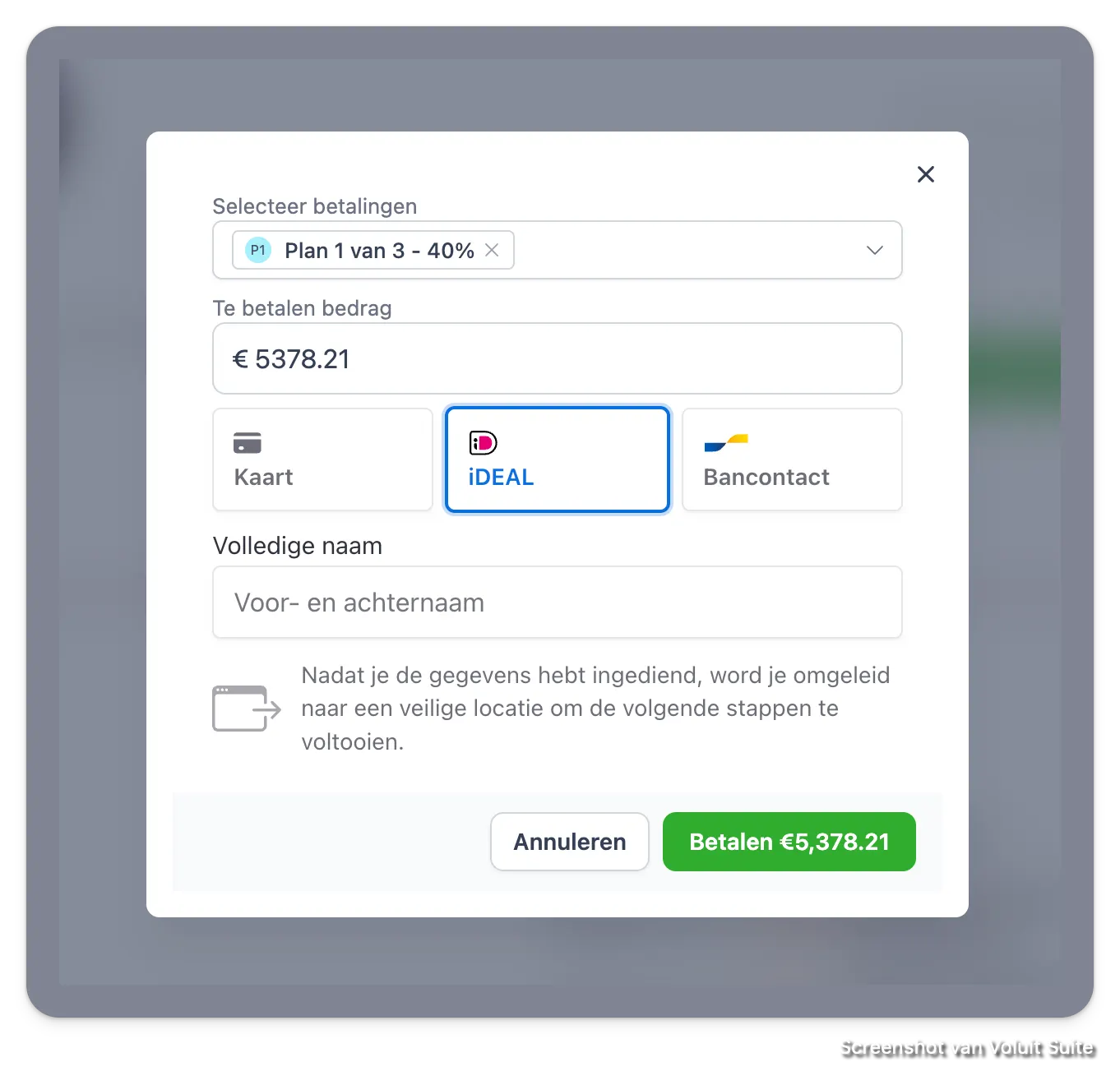 De ontvanger kan vervolgens de eerste termijn betalen en heeft de optie om ook alvast de volgende termijnen te selecteren en te betalen.