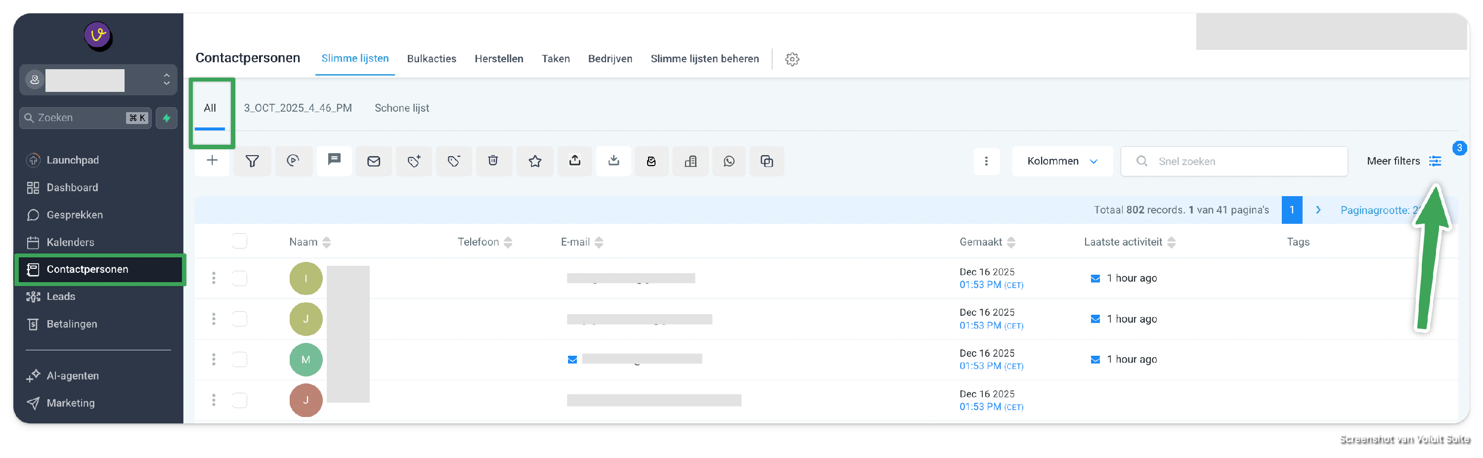Uiteindelijk heb je dan 3 eisen gecombineerd in 1 filter. Deze kun je opslaan als je slimme lijst voor 'iedereen die je mag mailen':