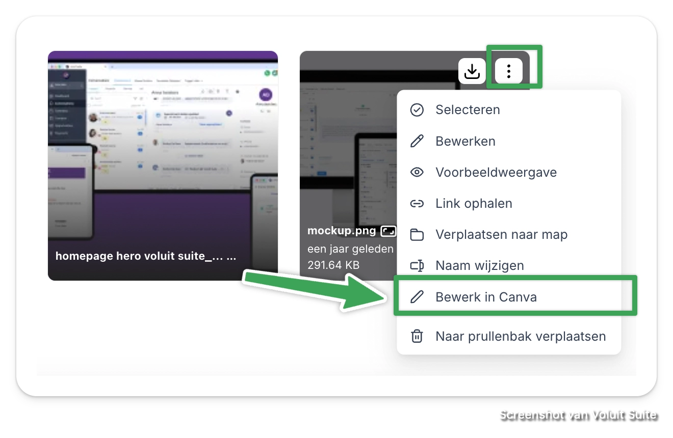 Je kunt zowel Canva-designs als ondersteunde Media Bibliotheek-bestanden direct in Canva bewerken.